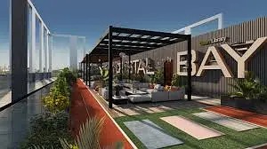 A retail shop inside the Vue crystalbay development, a mixed residental/retail tower in the jumriah village circle (JVC) community. The development features modern finishes,as "high foot fall area description implies the shop faces a location with strong visibility/traffic, which is important for retail rentals or owner-usage and also good for sales